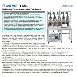 - possibility to upgrade the existing Calmet TB41 Test Bench by adding an external reference meter in case higher - accuracy application requirement